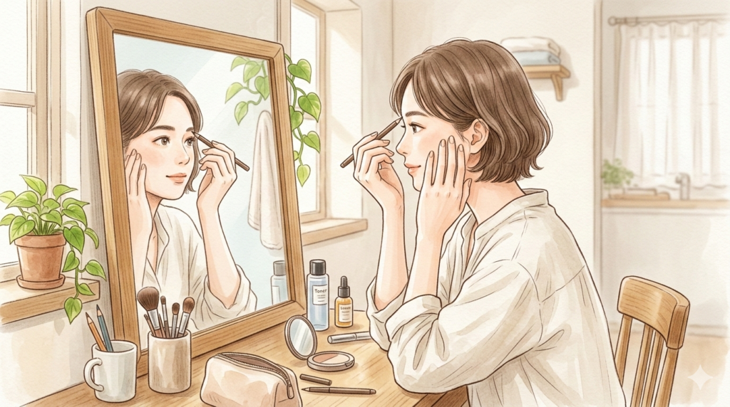普段のケアとしては、月に一回程度の定期的なお顔そりをおすすめします。肌のターンオーバーに合わせて不要な角質をオフし、常にメイクのりの良いベースを維持しましょう🥰